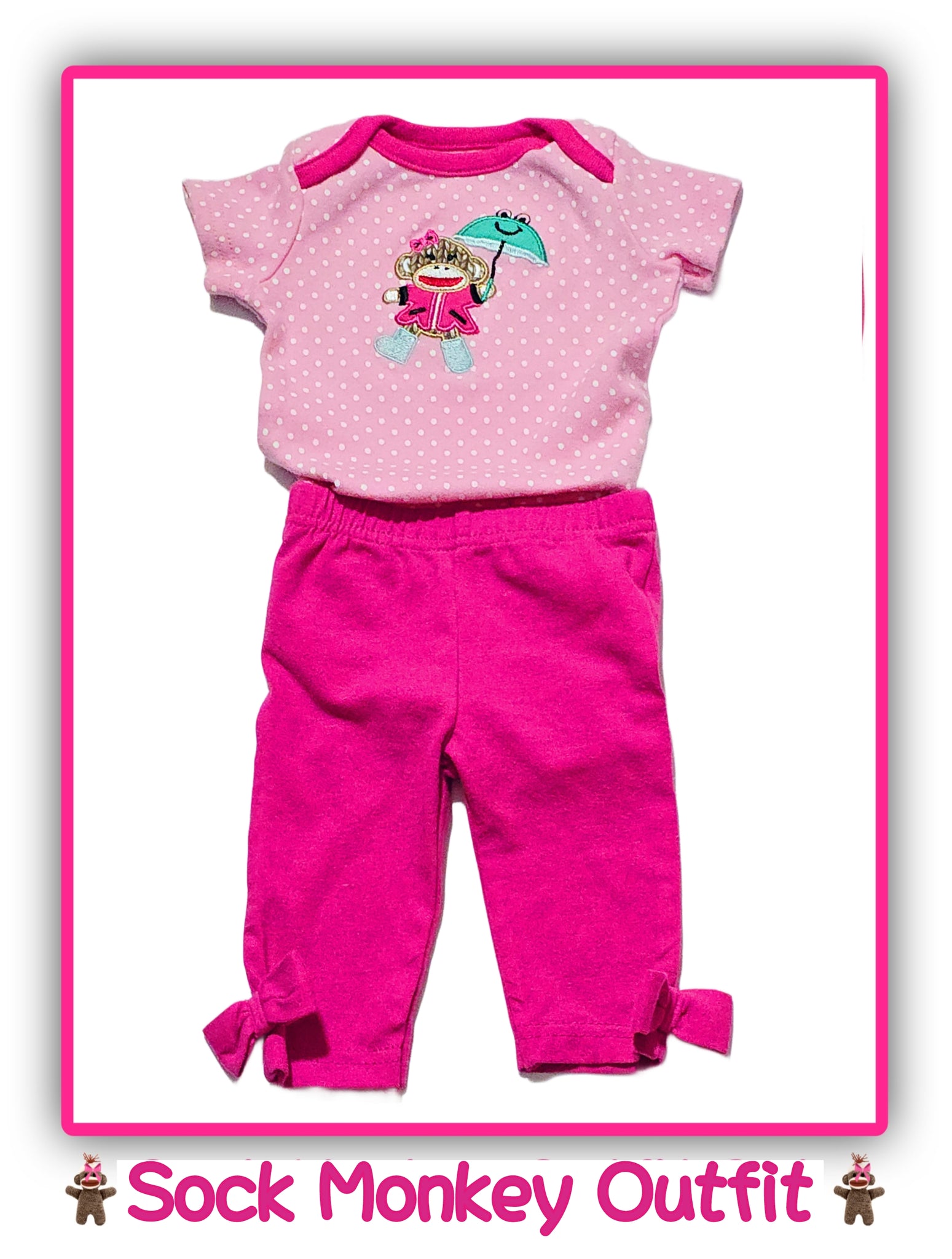0-3 Pink Sock Monkey Themed Outfit With Matching Accessories Set for Reborn, Silicone, And Other Lifelike Baby Dolls