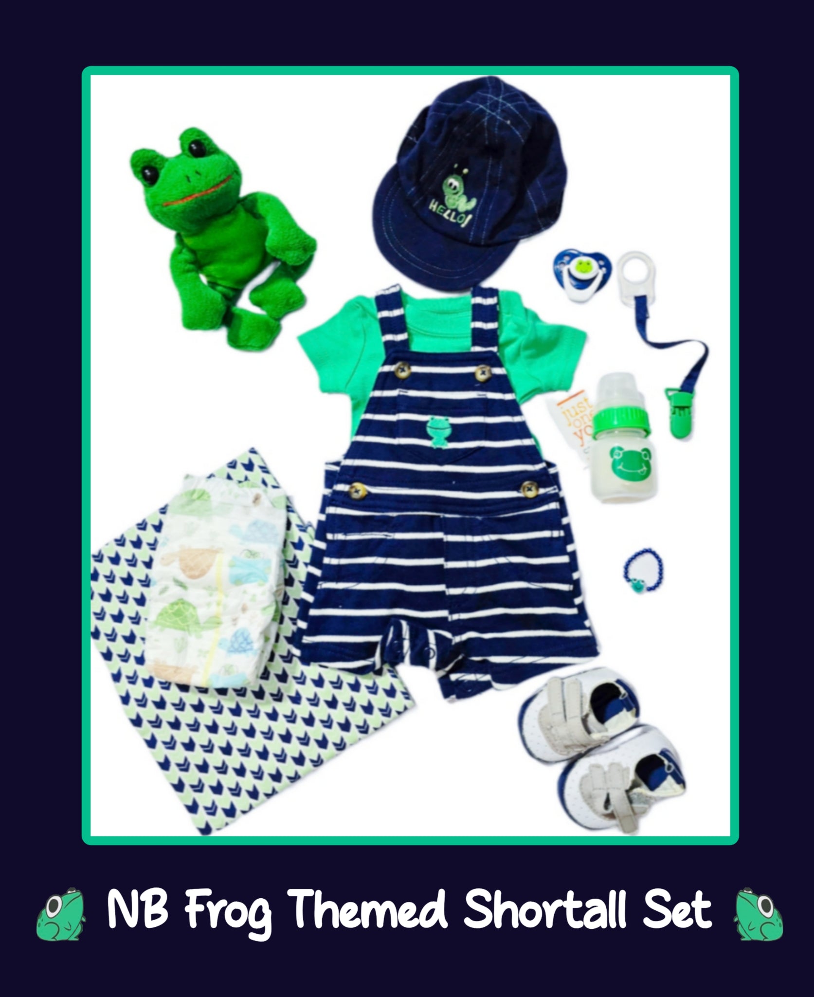 ⭐ Newborn (18"-20") Navy Blue & Green Frog Themed Shortalls & Shirt Outfit