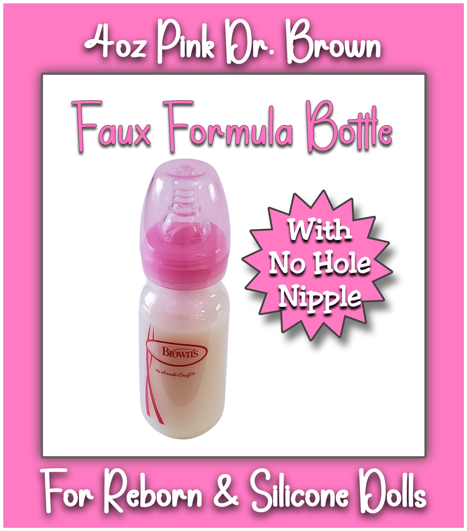 One Pink 4oz Sealed Dr. Brown Fake Formula/Milk Bottle w/Standard Size No Hole Nipple For Reborn, Silicone Or Other Lifelike Baby Dolls!
